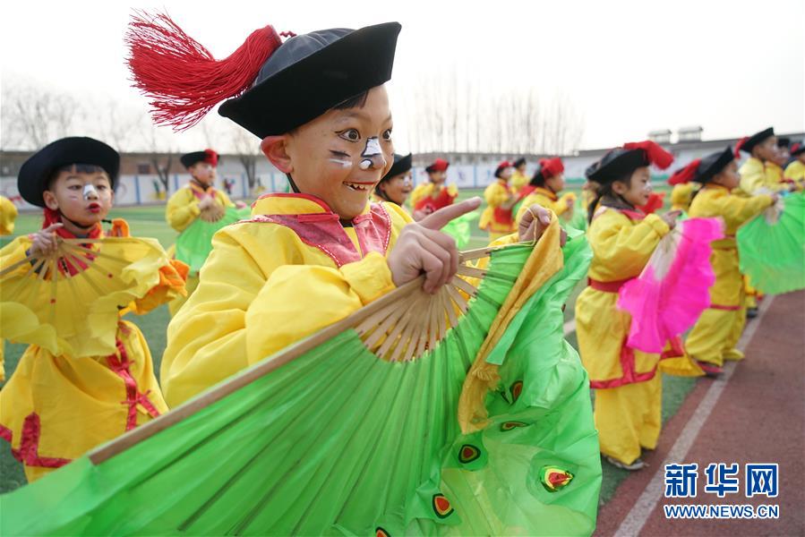 12月19日,河北省灤州市小閆營小學(xué)學(xué)生在排練地秧歌。 國家級非遺地秧歌是冀東地區(qū)廣為流傳的一種民間藝術(shù)。近年來,河北省灤州市響嘡街道小閆營小學(xué)將地秧歌引入校園,組建學(xué)生興趣社團,并聘請地秧歌藝人定期為孩子們授課,讓孩子們近距離感受家鄉(xiāng)傳統(tǒng)文化的魅力。 新華社記者 牟宇 攝