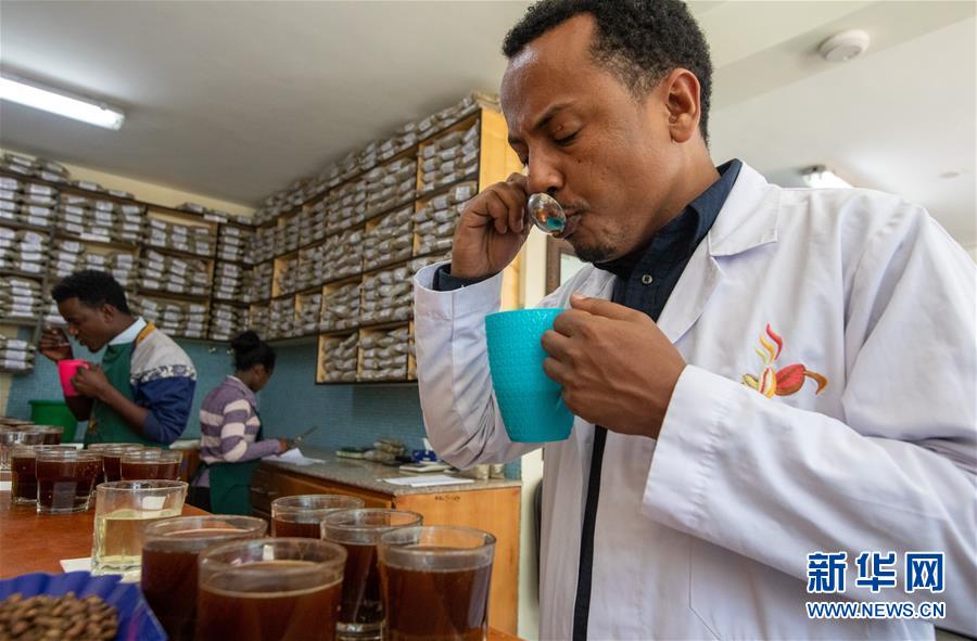 2019年10月23日,在位于埃塞俄比亞首都亞的斯亞貝巴郊外的卡辰什咖啡加工廠內(nèi),卡辰什咖啡質(zhì)量和市場(chǎng)總監(jiān)阿斯納克·卡薩在杯測(cè)室參與咖啡的杯測(cè)。卡辰什咖啡是埃塞俄比亞最大的咖啡生產(chǎn)商和出口商之一??ㄋ_表示,中國(guó)市場(chǎng)潛力巨大,埃塞俄比亞咖啡在中國(guó)市場(chǎng)的占有率不斷增長(zhǎng),進(jìn)博會(huì)對(duì)埃塞俄比亞咖啡出口商來(lái)說(shuō)是一個(gè)很好的機(jī)會(huì)。 新華社記者 張宇 攝