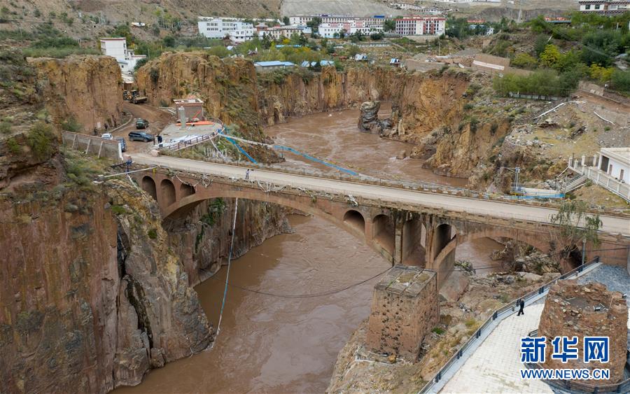 這是10月23日在芒康縣如美鎮(zhèn)無人機(jī)拍攝的318國道瀾滄江上的竹卡大橋。新華社記者江宏景攝
