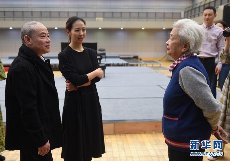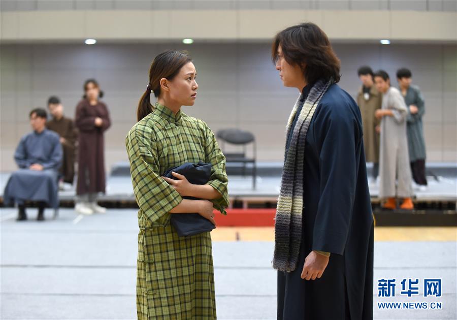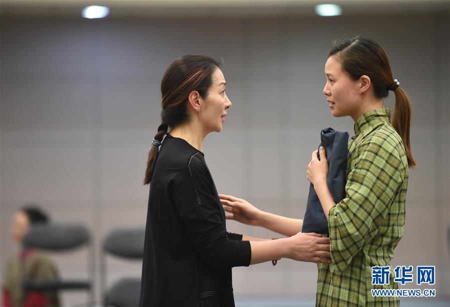 12月26日,在話劇《二月》中飾演陶嵐的演員盧芳(前左)在排練。 新華社記者 羅曉光 攝