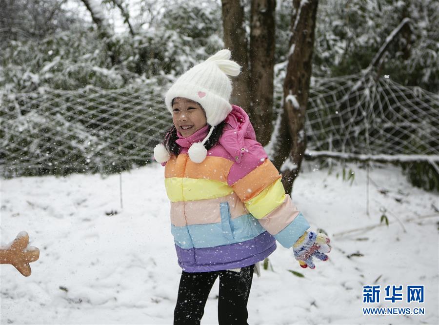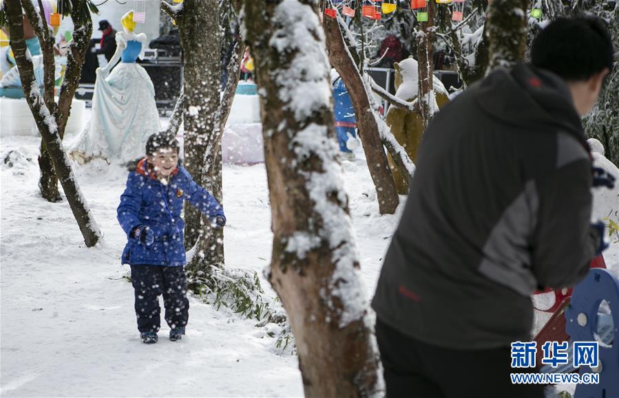 12月28日,小朋友在峨眉山風(fēng)景名勝區(qū)玩雪。新華社記者李夢馨攝