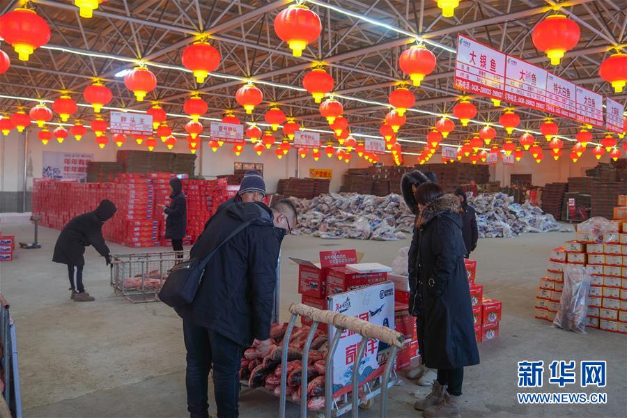 12月27日,在查干湖漁場(chǎng)超市,消費(fèi)者選購(gòu)查干湖魚。新華社記者張楠攝
