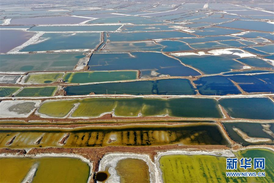12月27日無人機(jī)拍攝的山西運(yùn)城鹽湖。 冬日時節(jié),從空中俯瞰位于山西省運(yùn)城市的鹽湖,景色如畫。 新華社記者曹陽攝