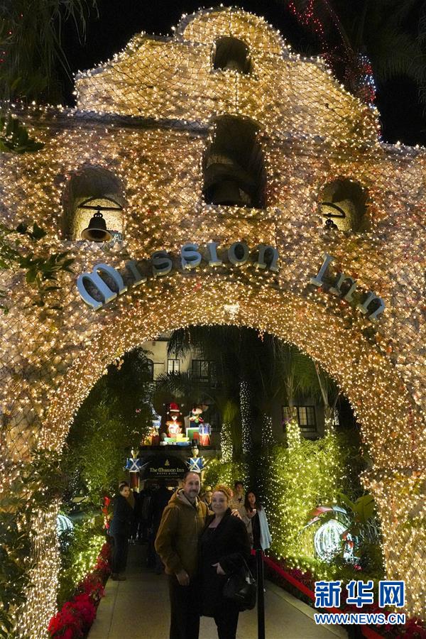 12月29日,人們在美國加利福尼亞州里弗賽德燈光節(jié)上欣賞彩燈。第27屆里弗賽德燈光節(jié)流光璀璨,洋溢著濃厚的新年氣氛,吸引眾多游客前來觀看。  新華社記者李穎攝