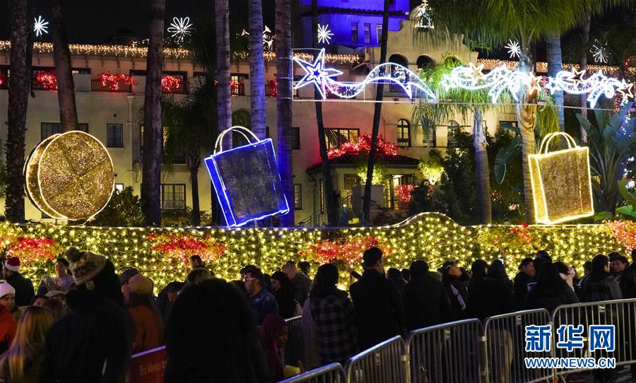 12月29日,人們在美國加利福尼亞州里弗賽德燈光節(jié)上欣賞彩燈。  新華社記者李穎攝