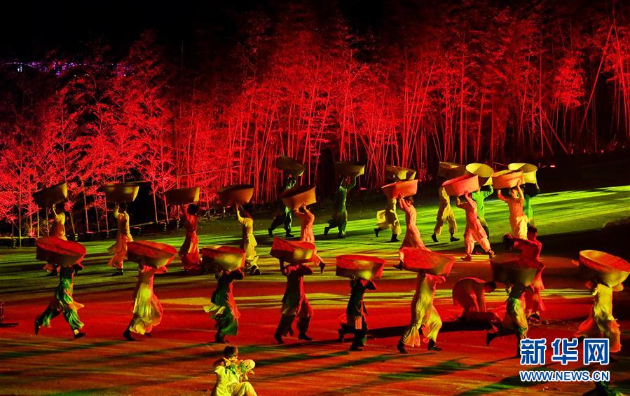 12月30日,演員在武夷山表演《印象大紅袍》。當(dāng)日,福建武夷山“印象大紅袍十周年公益晚會”在風(fēng)光秀麗的大王峰下舉行?!队∠蟠蠹t袍》《印象劉三姐》《印象麗江》《又見平遙》《印象武隆》《印象西湖》六部“印象家族”作品同臺亮相。這場公益晚會票房收入將全部捐獻給南平市紅十字會,用于資助閩北山區(qū)貧困家庭。  新華社記者 張國俊 攝