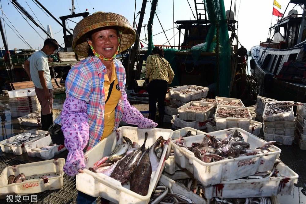 金秋時(shí)節(jié),漁民抓住南海風(fēng)和日麗秋高氣爽的好天氣加緊進(jìn)行海洋捕撈。