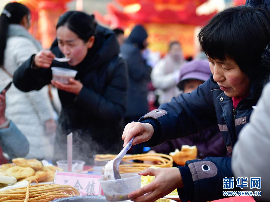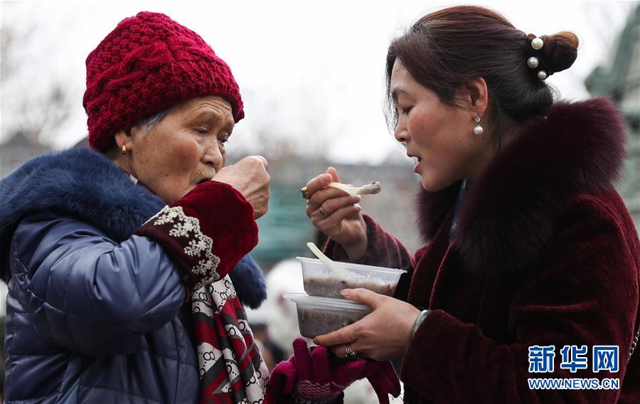 1月2日,兩位市民在閬中古城貢院廣場(chǎng)吃臘八粥。 當(dāng)日是農(nóng)歷臘月初八臘八節(jié),四川閬中古城舉行“萬(wàn)人同品臘八粥”活動(dòng),當(dāng)?shù)鼐用窈捅姸嘤慰驮谪曉簭V場(chǎng)免費(fèi)享用臘八粥。 新華社記者 江宏景 攝