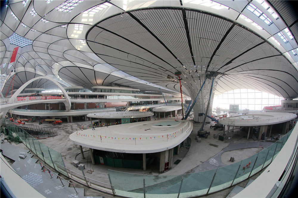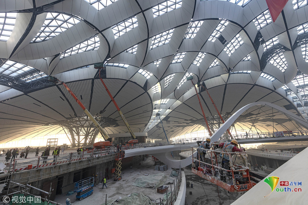 2019年5月24日,北京,新機(jī)場(chǎng)建設(shè)距離竣工時(shí)間還有37天,工程進(jìn)入倒計(jì)時(shí)。機(jī)場(chǎng)開(kāi)建至今不到5年時(shí)間,機(jī)場(chǎng)施工工程將于6月底竣工,將于9月底投入運(yùn)營(yíng),該機(jī)場(chǎng)有望成為世界上規(guī)模最大的機(jī)場(chǎng)之一。任振朝/千龍圖像/視覺(jué)中國(guó)