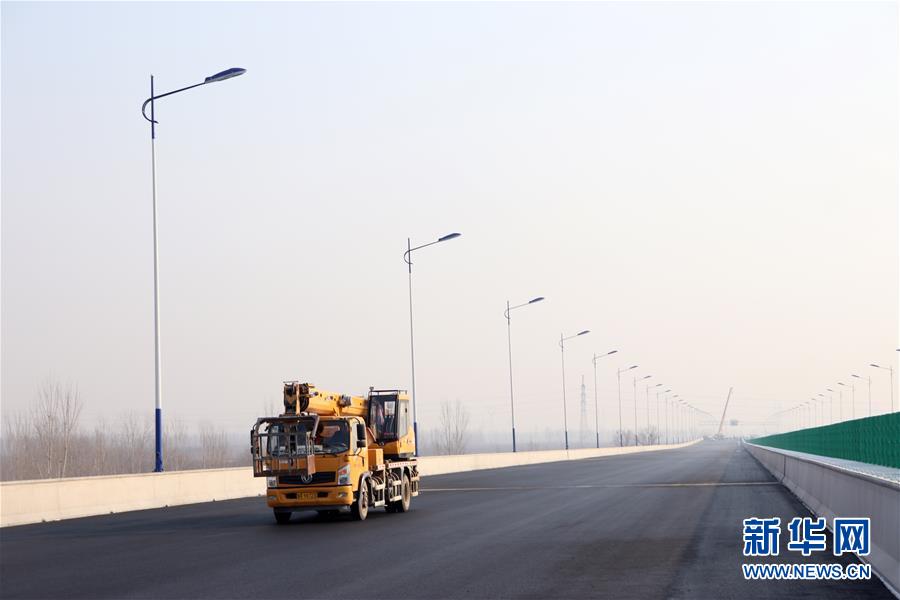 1月3日,施工車(chē)輛在北京大興國(guó)際機(jī)場(chǎng)北線高速公路廊坊段行駛。新華社記者牟宇攝
