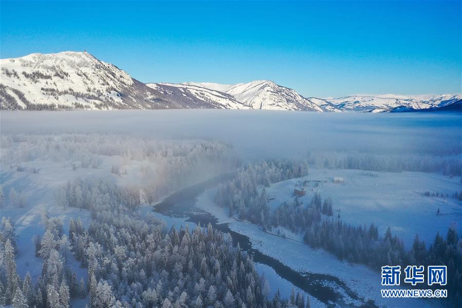 這是1月3日拍攝的晨霧下的喀納斯河(無(wú)人機(jī)照片)。新華社記者宋彥樺攝