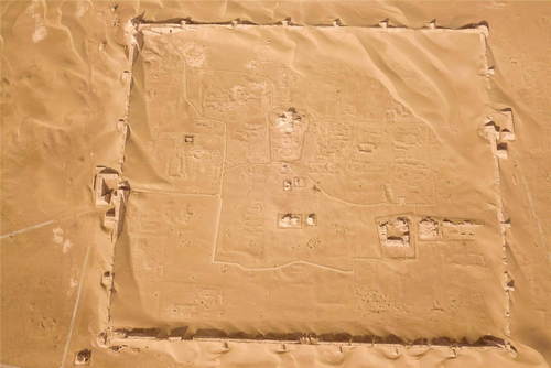 2019年10月18日拍攝的黑城遺址城池全貌(無人機照片)。黑城遺址位于內蒙古阿拉善盟額濟納旗達來庫布鎮(zhèn),建于公元九世紀,是草原絲綢之路上現(xiàn)存較為完整的一處古城遺址,2001年被列入第五批全國重點文物保護單位。新華社記者彭源攝
