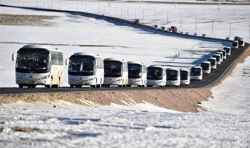 2019年12月23日拍攝的西藏那曲市雙湖縣牧民的遷徙車隊。西藏那曲市雙湖縣嘎措鄉(xiāng)、措折羌瑪鄉(xiāng)、雅曲鄉(xiāng)共2900人,告別了平均海拔5000米的家鄉(xiāng),經(jīng)過近千公里搬遷到海拔相對較低的藏南雅魯藏布江南岸的貢嘎縣境內。這是西藏自治區(qū)近年來實施的極高海拔生態(tài)搬遷項目之一,雙湖縣三個鄉(xiāng)的整體搬遷是其中人數(shù)最多、跨度最遠的一次搬遷。新華社記者覺果攝