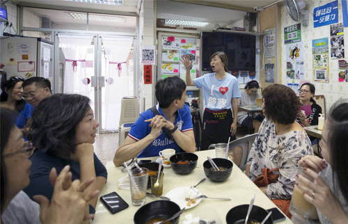 2019年10月10日,食客在李凱瑚位于香港九龍的茶餐廳里聚集,為她加油。51歲的李凱瑚是土生土長的香港人,她多次參加撐警集會(huì),并在社交媒體上表態(tài)支持警察。遭到騷擾和恐嚇 但李凱瑚繼續(xù)勇敢支持警察,向市民發(fā)出號(hào)召,反對暴力。一些香港市民、內(nèi)地游客專程來到李凱瑚的茶餐廳,為她加油打氣,表達(dá)對香港的美好祝愿。新華社記者盧燁攝