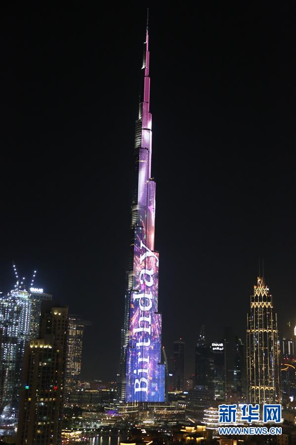 這是1月4日在阿聯酋迪拜拍攝的世界第一高樓哈利法塔慶祝開放10周年燈光秀。新華社記者蘇小坡攝