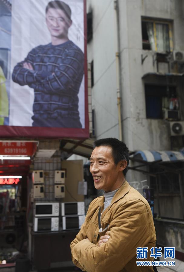 冉光輝在重慶朝天門大正商場附近等活(1月5日攝)。新華社記者王全超攝