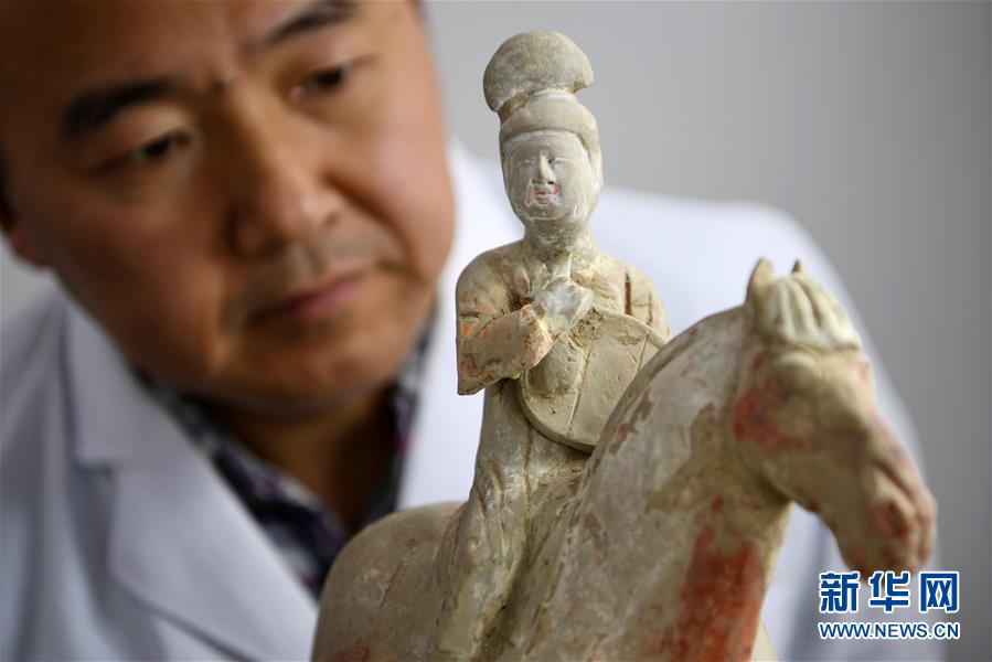 2019年12月27日,在天水市博物館文物保護修復中心陶、玉石器文物修復室,專業(yè)技術人員孟旭輝在觀察一件唐代彩繪陶俑的病害情況。 甘肅省天水市博物館文物保護修復中心有一支專業(yè)的文物修復隊伍,共有14名專業(yè)技術人員。從2012年正式成立以來,他們不僅承擔著對館藏和館外文物的修復工作,還參與了多次文化遺存的調(diào)查和搶救性發(fā)掘、古建筑彩畫保護、古墓葬搬遷復原等工作。一件件殘缺破損、滿身病害的文物經(jīng)過他們的巧手修復,又重新煥發(fā)光彩,展示在公眾面前。 新華社記者 馬寧 攝