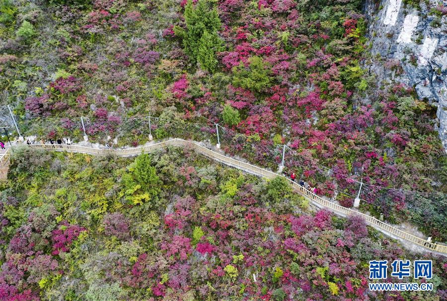 2019年11月23日,游客在位于長江巫峽段的重慶巫山文峰景區(qū)游覽(無人機照片)。新華社記者王全超攝