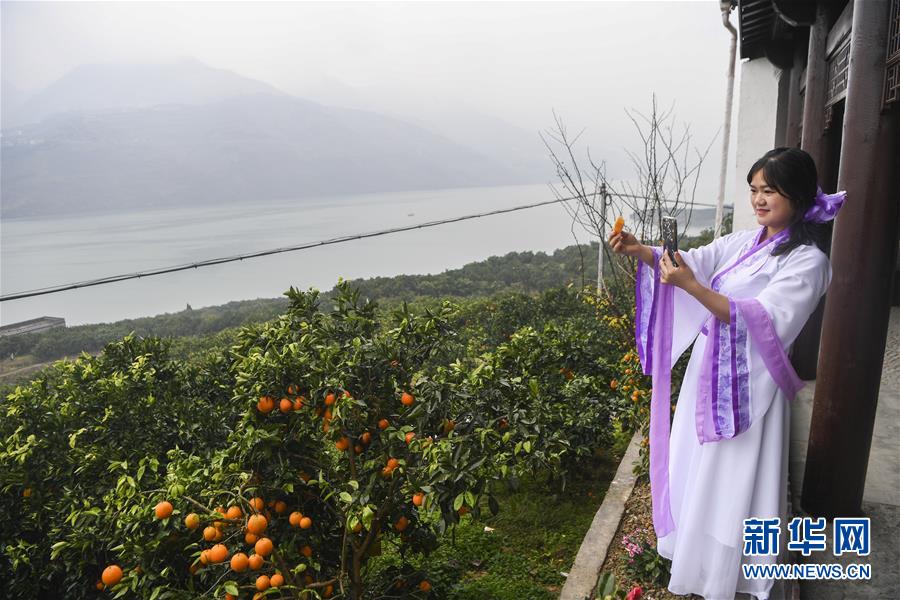 重慶市奉節(jié)縣白帝鎮(zhèn)黃連村村民在果園里采摘臍橙(2019年2月13日攝)。新華社記者王全超攝