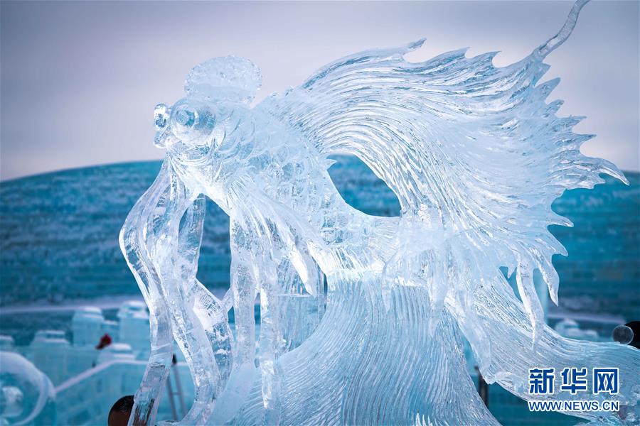 在哈爾濱冰雪大世界內(nèi)拍攝的冰雕作品(1月8日攝)。新華社記者王松攝
