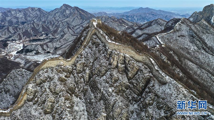 這是1月7日拍攝的北京箭扣長(zhǎng)城雪景(無(wú)人機(jī)照片)。 新華社記者 陳曄華 攝