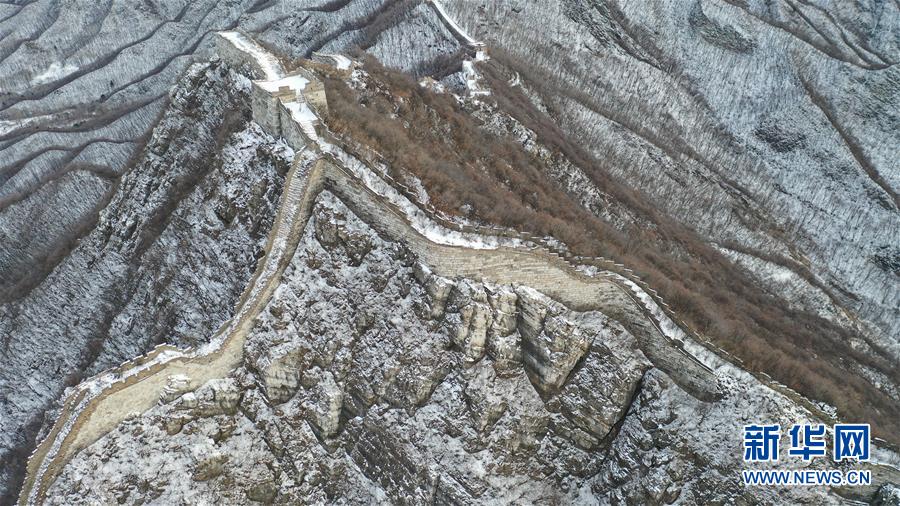 這是1月7日拍攝的北京箭扣長城雪景(無人機(jī)照片)。 新華社記者 陳曄華 攝