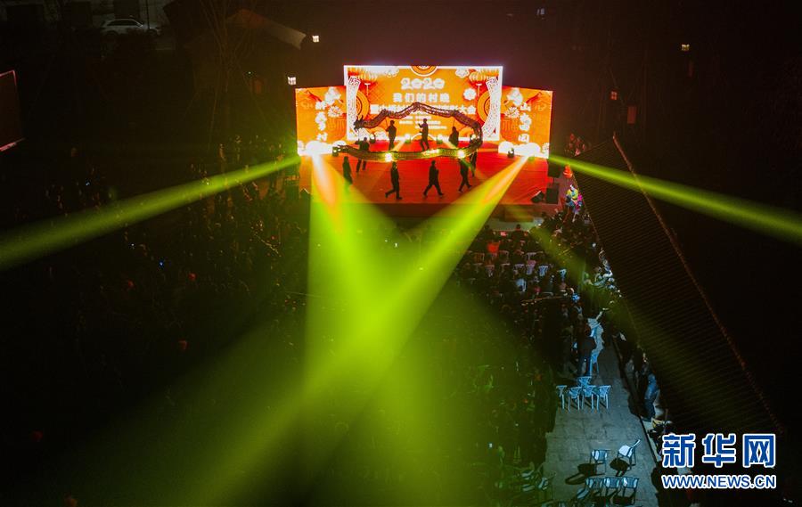 1月14日,杭州市余杭區(qū)中泰街道中橋村的文化公園內(nèi)在進行“我們的村晚”表演。臨近春節(jié),浙江省杭州市余杭區(qū)中泰街道各村社的文化禮堂紛紛上演“我們的村晚”。老百姓自編、自導(dǎo)、自演為主的“土味”聯(lián)歡會因接地氣、親情濃而深受當(dāng)?shù)匕傩盏南矏?,成為?dāng)?shù)剜l(xiāng)村百姓的新年迎春“文化大餐”。近年來,中泰街道以文化振興助推鄉(xiāng)村振興。目前,中泰街道下屬各村陸續(xù)建成文化禮堂7個、社區(qū)文化家園2個,努力培育和挖掘出一批鄉(xiāng)土文化人才及原創(chuàng)作品,2019年全年開展各類鄉(xiāng)村社區(qū)惠民文體活動累計180余場次。新華社記者徐昱攝