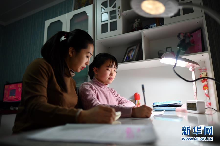 1月14日,陳海燕(左)在家里輔導女兒趙純藝完成作業(yè)。新華社記者 詹彥 攝