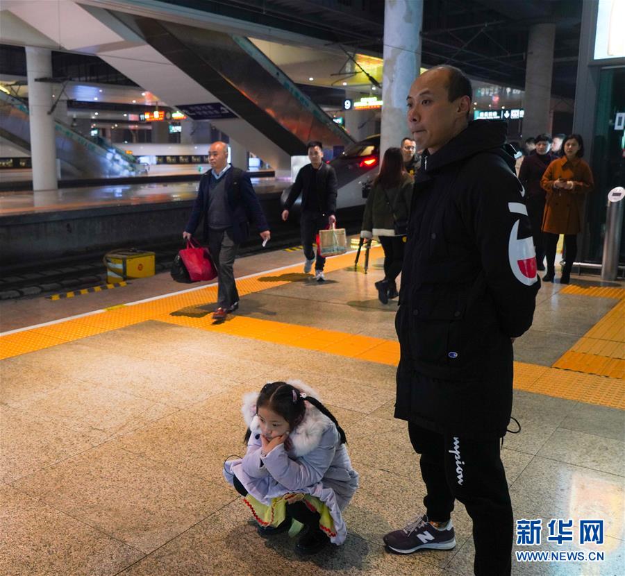 1月3日,由于卞菁值乘的動車晚點(diǎn),等待時間較長的朱梓芮(左)流露出稍許失望。新華社記者 胡晨歡 攝