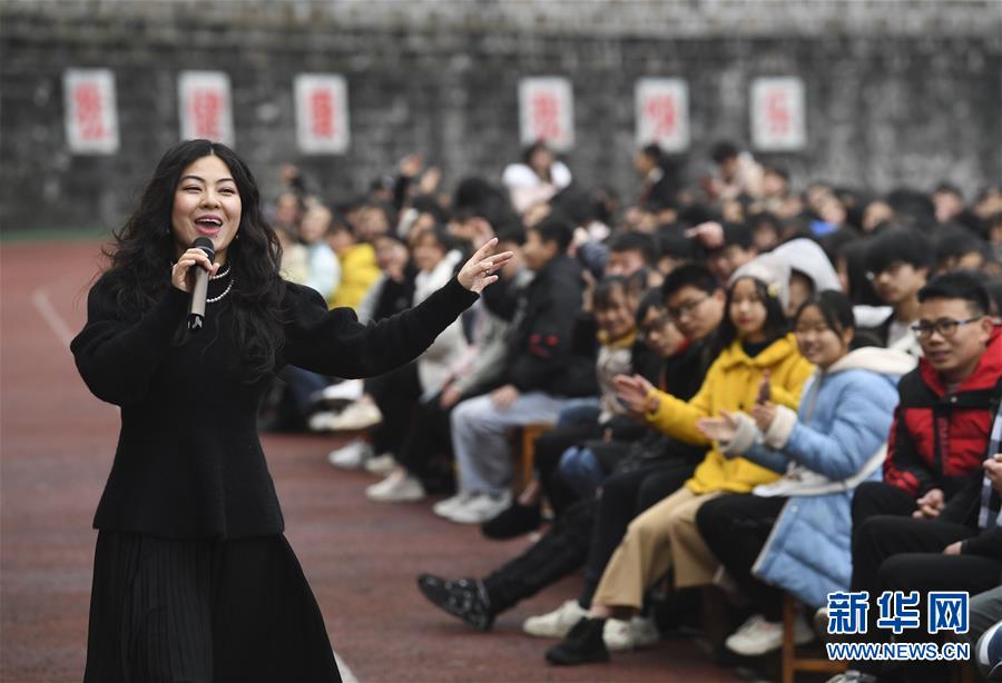 1月15日,中央歌劇院女高音歌唱家蔡楠在慰問(wèn)演出中演唱。 當(dāng)日,“我們的中國(guó)夢(mèng)”——文化進(jìn)萬(wàn)家中央歌劇院文藝小分隊(duì)來(lái)到重慶市石柱土家族自治縣第一職業(yè)學(xué)校進(jìn)行慰問(wèn)演出,為學(xué)校的三千多名師生帶來(lái)了一場(chǎng)精彩的音樂(lè)大餐。 新華社記者 王全超 攝