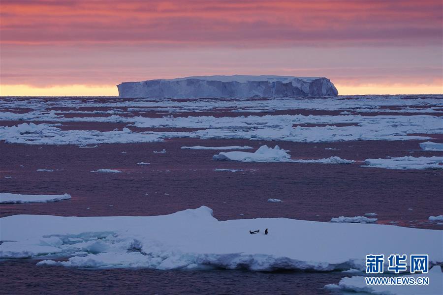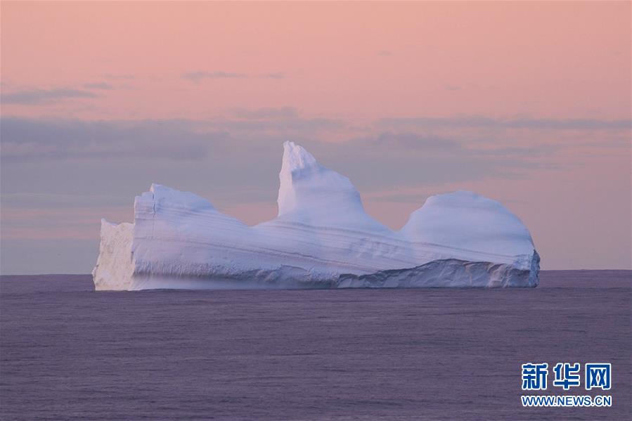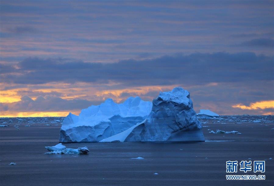 南大洋上的午夜冰山(2019年12月28日攝)。新華社記者劉詩(shī)平攝