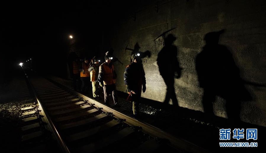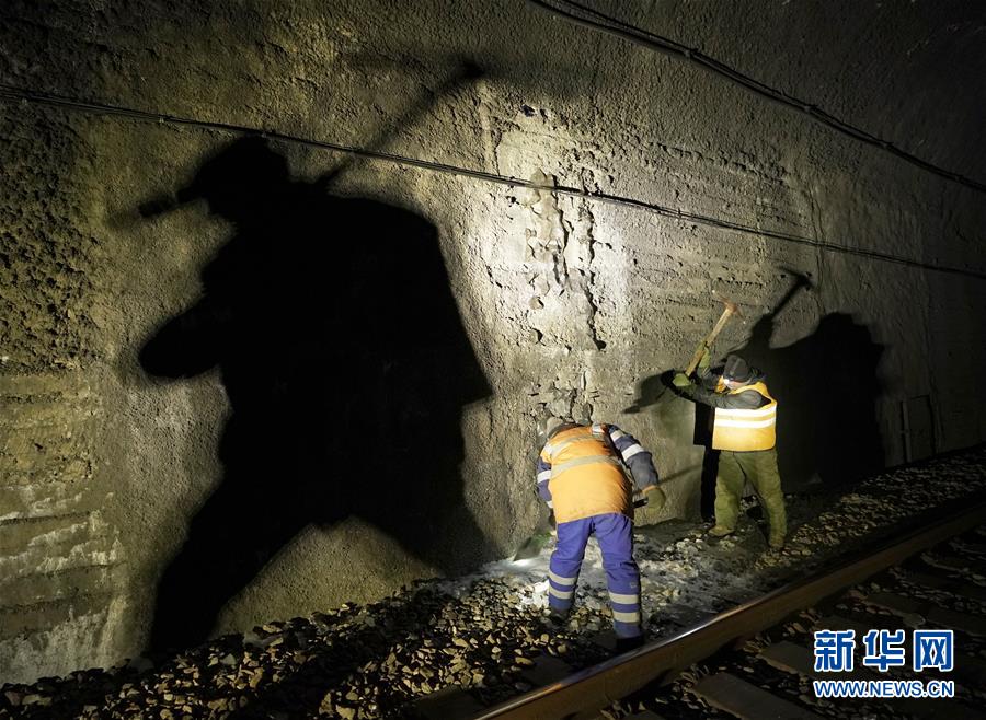 1月6日,在加格達奇工務(wù)段西羅奇嶺二號隧道,西羅奇維修工隊工作人員進行維修作業(yè)。新華社記者才揚攝
