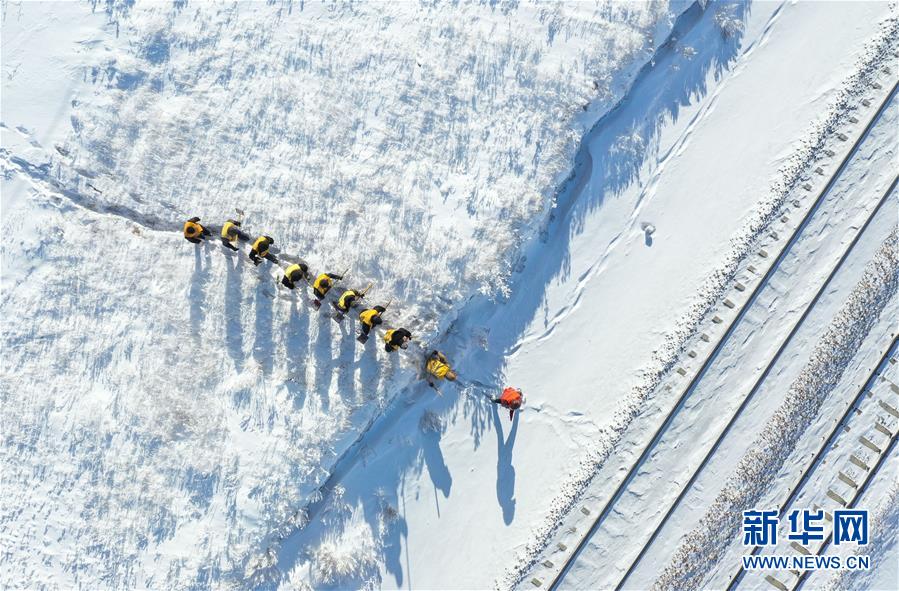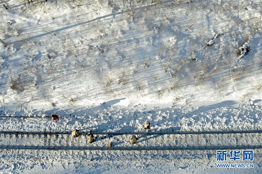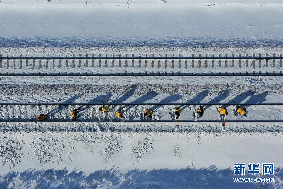1月13日,白音庫倫綜合維修車間線路養(yǎng)護職工前往作業(yè)點。新華社記者劉磊攝