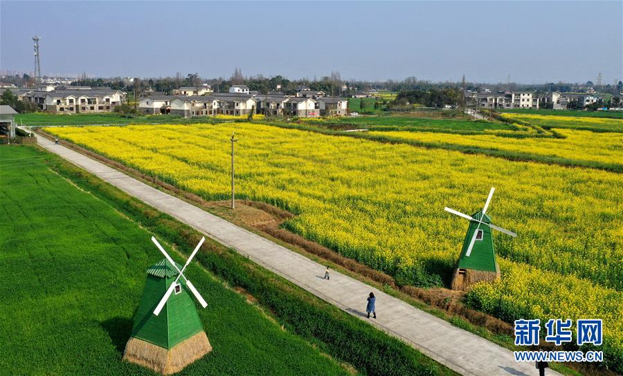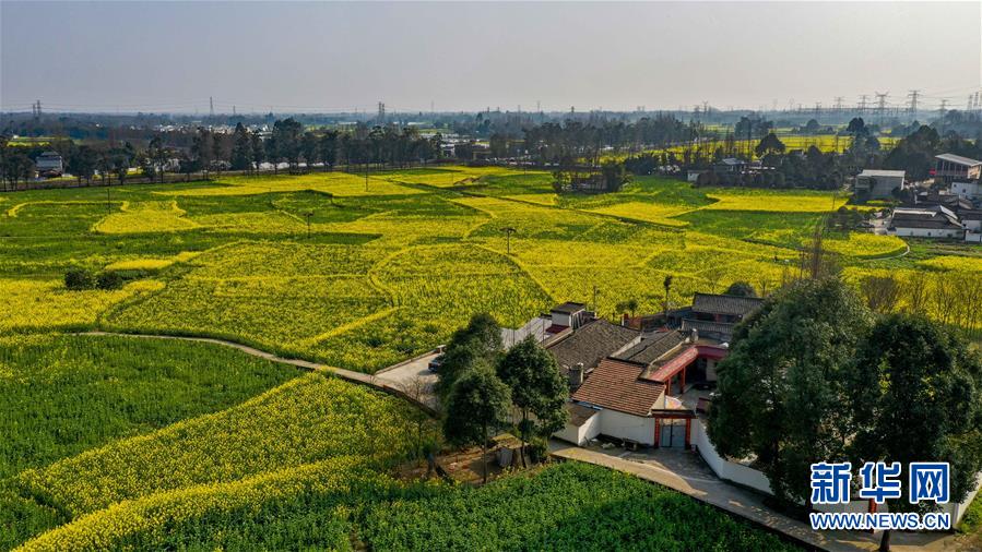 2月24日在四川省大邑縣安仁鎮(zhèn)永興村拍攝的油菜花田(無(wú)人機(jī)照片)。  新華社記者 王曦 攝