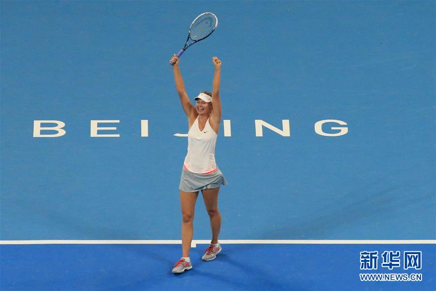 圖為2014年10月5日,莎拉波娃在中國網(wǎng)球公開賽女子單打決賽中戰(zhàn)勝捷克選手科維托娃,奪得冠軍。 新華社記者邢廣利攝