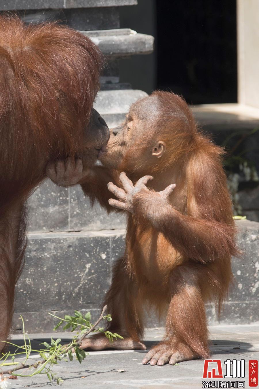當(dāng)時(shí)三歲的 Berani正獨(dú)自在戶外玩耍,不一會(huì)它的媽媽 Sari就找來(lái)了,一把拖著娃從草地上回到家門口,然后立刻送上擁抱和親吻,原來(lái)猩媽媽是想孩子了呀!