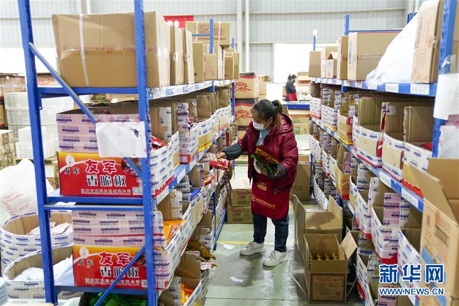 2月27日,在秀山(武陵)現(xiàn)代物流園區(qū)的電商云倉內(nèi),工人在按照訂單配貨。地處重慶市秀山縣的秀山(武陵)現(xiàn)代物流園區(qū),是渝湘黔三省市交界地區(qū)的區(qū)域性物流中心。重慶市秀山縣在做好新冠肺炎疫情防控工作前提下,當(dāng)?shù)卣e極幫助電商、物流企業(yè)解決招工、運輸、銷售等方面的實際問題,推動秀山(武陵)現(xiàn)代物流園區(qū)快速進(jìn)入全面復(fù)工復(fù)產(chǎn)階段。據(jù)介紹,隨著物流園區(qū)的電商和物流企業(yè)全面復(fù)工復(fù)產(chǎn),既滿足當(dāng)?shù)厝罕姷奈镔Y供應(yīng),又幫助當(dāng)?shù)剞r(nóng)產(chǎn)品通過電商平臺實現(xiàn)快速銷售。新華社記者劉潺攝