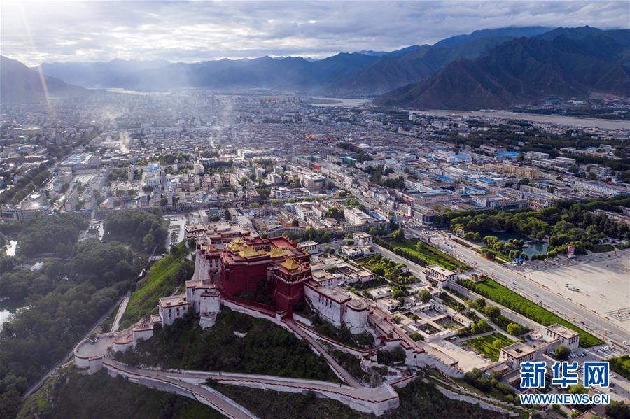 鳥(niǎo)瞰拉薩古城(8月10日無(wú)人機(jī)拍攝)。新華社記者普布扎西攝