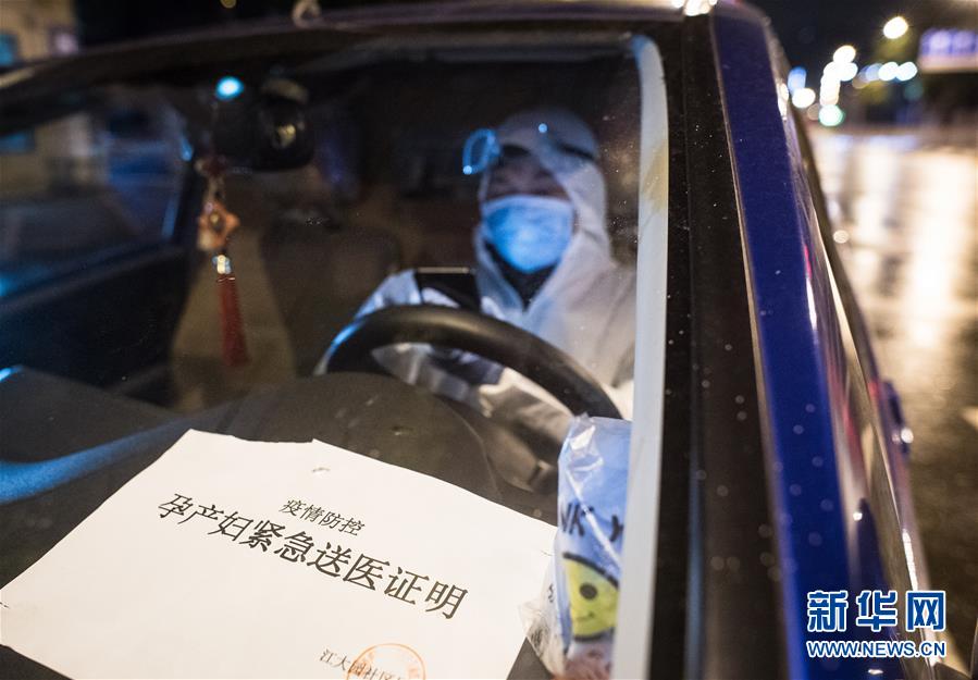 2月29日凌晨,王震接上產(chǎn)婦劉婷后駕車前往武漢市婦幼保健院。新華社記者 肖藝九 攝