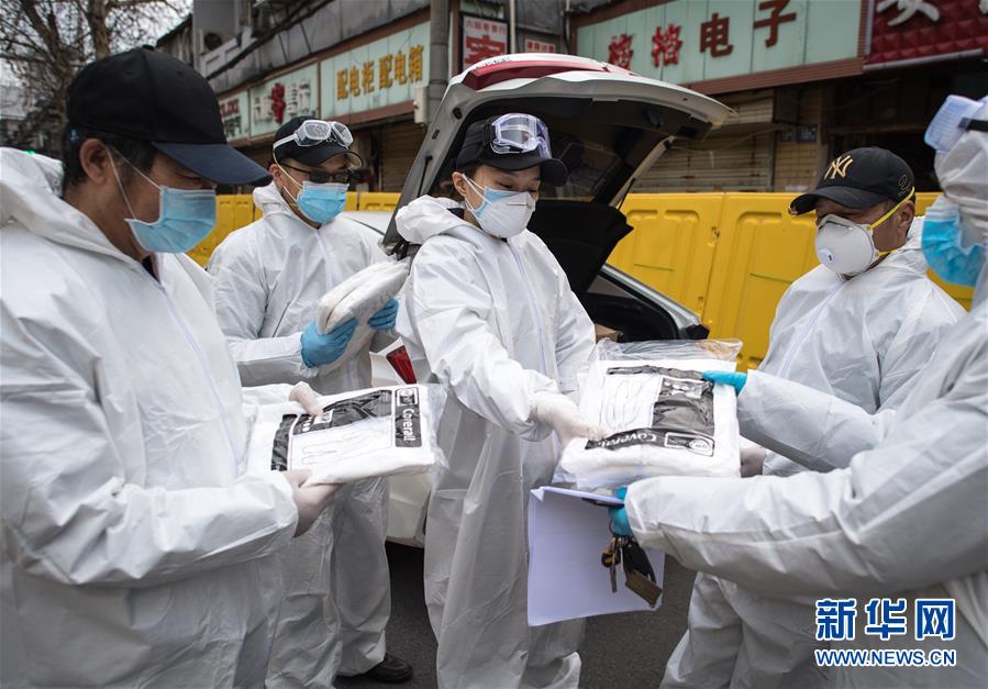 2月29日,W大武漢緊急救援隊(duì)隊(duì)長(zhǎng)王紫懿(中)為隊(duì)員發(fā)放防護(hù)服。她說(shuō),現(xiàn)在防護(hù)物資十分緊缺,隊(duì)員們都在省著用,希望能撐到疫情結(jié)束。新華社記者 肖藝九 攝
