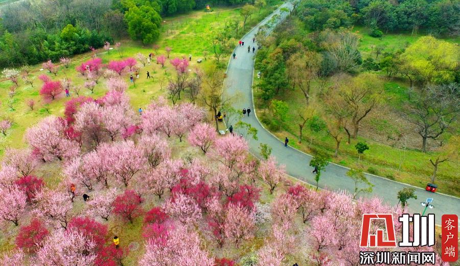 2020年2月26日,春暖花開,春意盎然,江蘇省揚州市蜀岡西峰生態(tài)公園內(nèi)梅花競相綻放,五顏六色的梅花樹為古城大地披上七彩春裝,美不勝收,吸引了市民和游客前來踏春賞景。