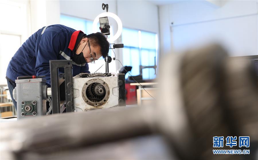 3月4日,職教城內(nèi)的鞍山市交通運(yùn)輸學(xué)校的高峰老師為學(xué)生進(jìn)行變速器檢修實(shí)訓(xùn)網(wǎng)絡(luò)授課。遼寧省鞍山市職教城內(nèi)的各類(lèi)職業(yè)教育學(xué)校從3月2日恢復(fù)網(wǎng)絡(luò)授課以來(lái),教師們?cè)O(shè)置了豐富多彩的課程,提高1萬(wàn)余名學(xué)生線(xiàn)上學(xué)習(xí)的積極性。新華社記者姚劍鋒 攝