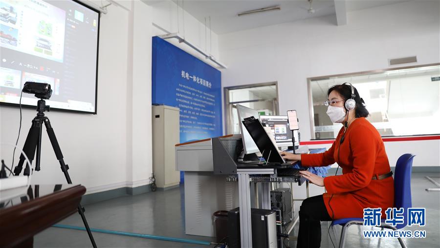 3月4日,職教城內(nèi)的鞍山市技師學(xué)院的王曉娜老師為學(xué)生進(jìn)行機(jī)電一體化網(wǎng)絡(luò)授課。遼寧省鞍山市職教城內(nèi)的各類(lèi)職業(yè)教育學(xué)校從3月2日恢復(fù)網(wǎng)絡(luò)授課以來(lái),教師們?cè)O(shè)置了豐富多彩的課程,提高1萬(wàn)余名學(xué)生線(xiàn)上學(xué)習(xí)的積極性。新華社記者 姚劍鋒 攝