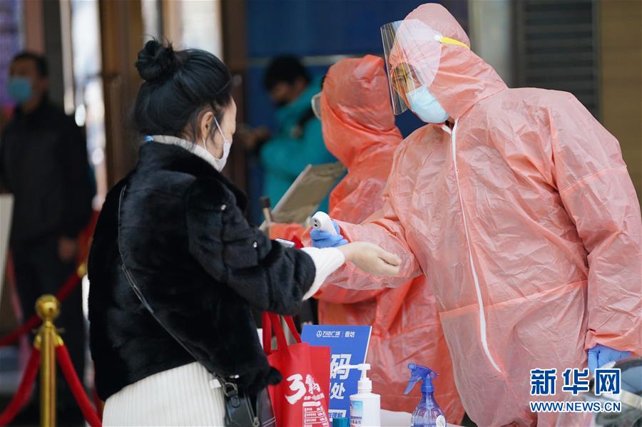 3月13日,在哈爾濱香坊萬(wàn)達(dá)廣場(chǎng)內(nèi),工作人員在給進(jìn)店顧客測(cè)體溫。 近日,哈爾濱市多家大型商場(chǎng)陸續(xù)恢復(fù)營(yíng)業(yè)。這些恢復(fù)營(yíng)業(yè)的商場(chǎng)采取多種措施,從嚴(yán)細(xì)致做好疫情防控和安全風(fēng)險(xiǎn)防范工作,為廣大顧客提供安全放心的購(gòu)物空間。 新華社記者 王建威 攝