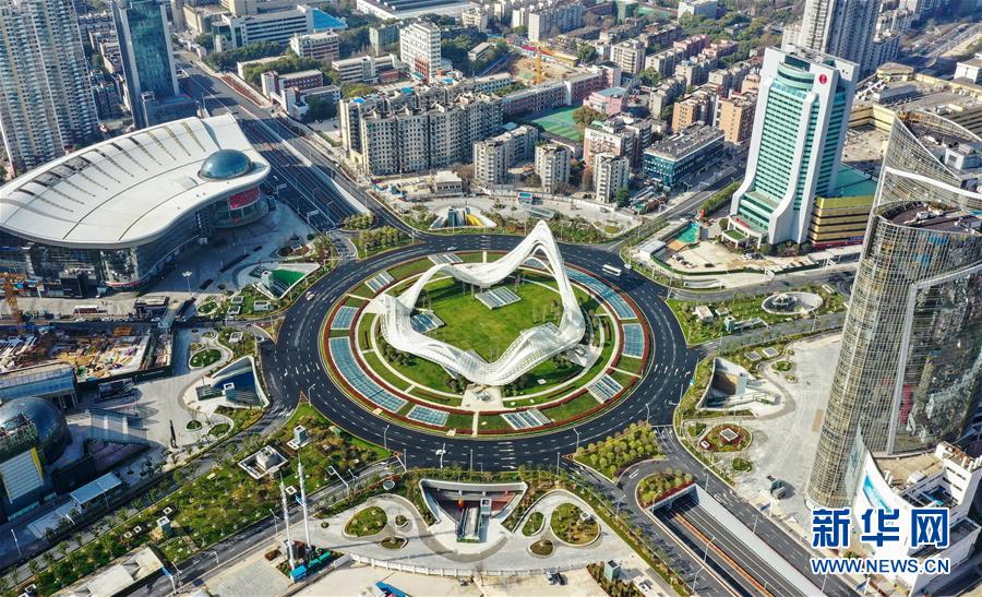 這是3月15日拍攝的武漢光谷廣場(無人機(jī)照片)。 3月15日,江城武漢天氣晴好,整個(gè)城市沐浴在和煦的春光中。 新華社記者 李賀 攝