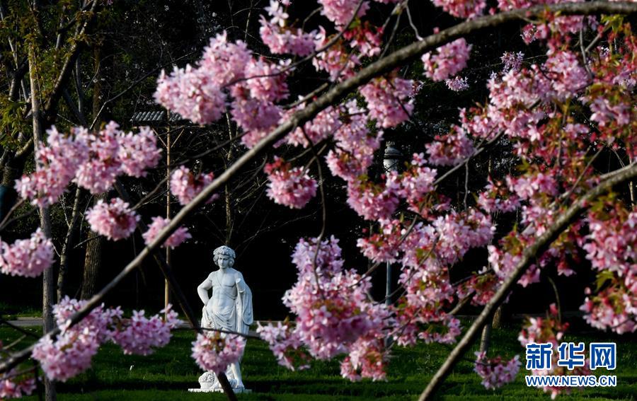 這是3月14日拍攝的武漢東湖磨山櫻園景色。近日氣溫漸升,武漢東湖磨山櫻園里的櫻花漸次盛開,帶來(lái)春天的氣息。新華社記者程敏攝