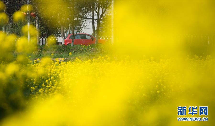 3月14日,在武漢市西北部市郊,一輛汽車從油菜花田前駛過。隨著氣溫升高,春意在武漢的枝頭上萌動(dòng),花朵漸次開放。新華社記者肖藝九攝