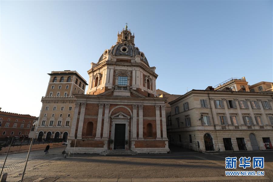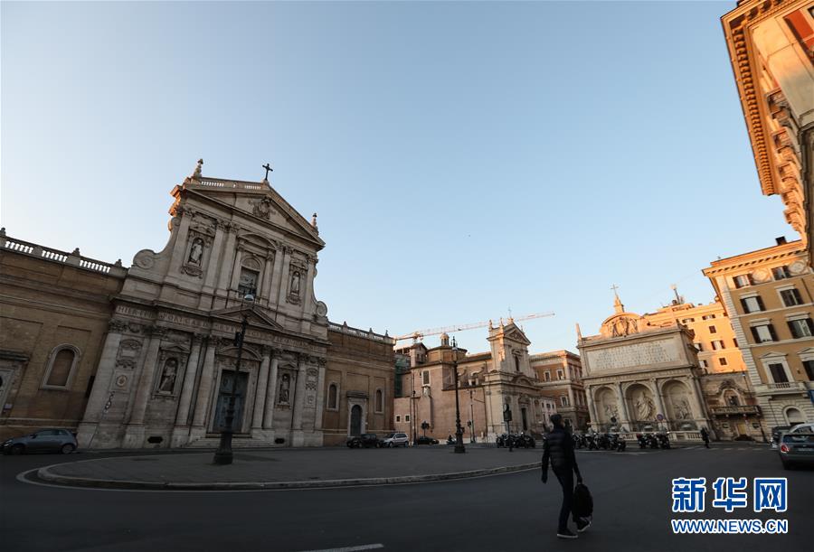 3月10日,在意大利首都羅馬,人民廣場上游人稀少。新華社記者程婷婷攝