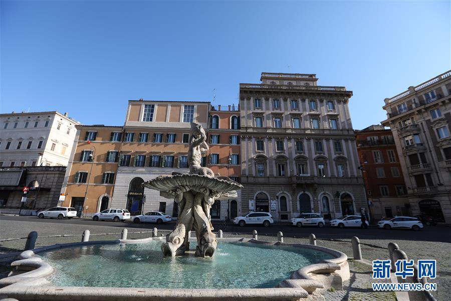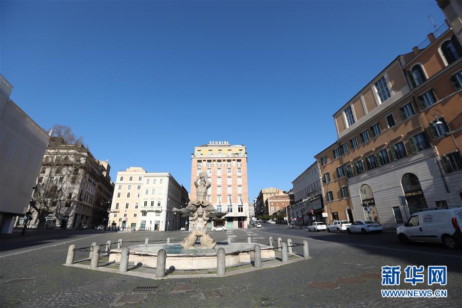 3月16日,在意大利首都羅馬,巴貝里尼廣場空曠無游人。新華社記者程婷婷攝