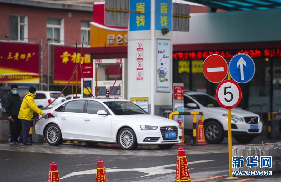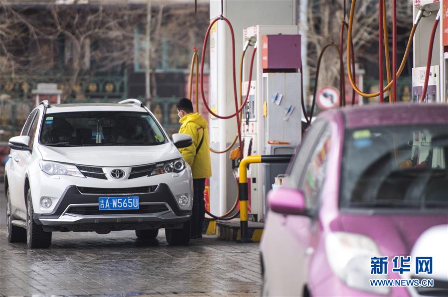 3月17日,吉林省長春市一處加油站工作人員為車輛加油。  國家發(fā)展改革委17日宣布,近日國際市場油價持續(xù)下跌,按照現(xiàn)行成品油價格形成機制,自2020年3月17日24時起,國內(nèi)汽油、柴油價格每噸分別降低1015元和975元。折合每升價格下調(diào)約8角。此次調(diào)價已至每桶40美元調(diào)控下限,即俗稱的“地板價”,低于40美元部分不再下調(diào)。新華社記者 許暢 攝